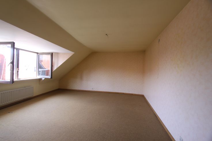Au troisième étage, une grande chambre et un débarras semi-aménagé.