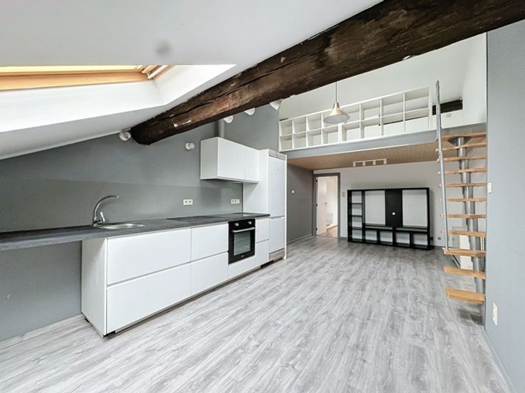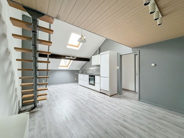 A Louer, appartement 2 chambres spacieux et lumineux nouvellement rénové, 69 m2, au 3ème étage (sans ascenseur) comprenant 1 grande cuisine équipée, 1 mezzanine, 2 chambres spacieuses et 1 SDB avec WC. Nouveaux châssis double vitrage.