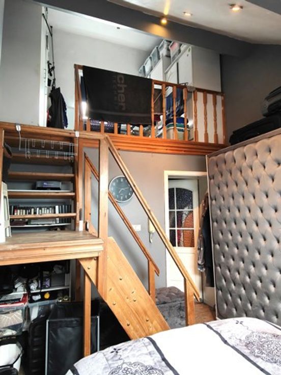 Au troisième étage, une belle chambre avec mezzanine de +/- 22 m² et une salle de bain de +/- 7 m².