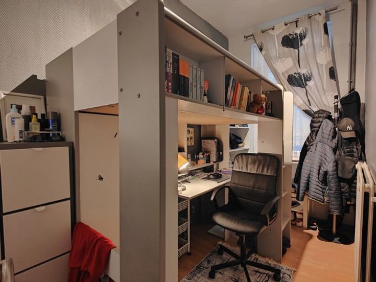 Au deuxième étage, une première chambre de +/-13 m² et un bureau/dressing de +/- 7 m² (transformé en chambre).