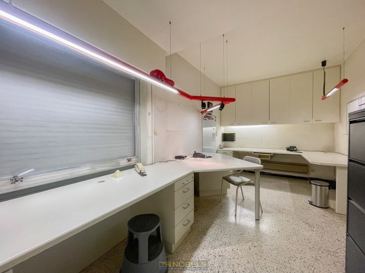 Het pand beschikt over een bureelruimte met een ontvangstruimte, ruime polyvalente ruimte van ongeveer 206 m², apart toilet en een berging.