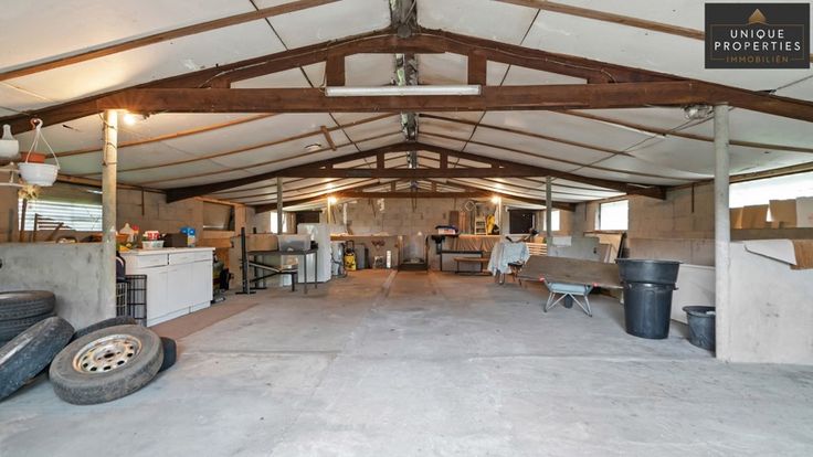Unique Properties verkoopt deze interessante opportuniteit, een ruim gebouw met woning op een groot perceel en met een gunstige ligging. De hangar/werkplaats is ideaal voor ieder die op zoek is naar voldoende ruimte voor een zelfstandige activiteit, werkplaats of stockage. Door de oppervlakte van 150m² zijn er verschillende interessante opties mogelijk. Er zijn meer dan voldoende parkeerplaatsen voorzien zowel op het perceel en aan de woning, en de werkplaats is makkelijk te bereiken via een verharde inrit. Ook verkeerstechnisch gezien is het zeer makkelijk te bereiken, met de oprit van de E314 op enkele honderden meters van het pand. Verder zorgt de volledige bruikbare en degelijke kelder onder de woning nog over extra mogelijkheden. De woning zelf beschikt over een ruime woonkamer met aparte keuken en veranda, 3 slaapkamers en badkamer op het eerste verdiep, en nog een volledige zolder die nog naar wens zou kunnen worden ingericht.