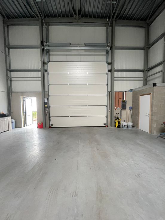 Nieuwbouwmagazijn (168 m²) met hoge sectionaalpoort op ambachtelijke zone te Blankenberge. Metalen constructie - wanden in betonpanelen - 1 elektrisch geïsoleerde sectionaalpoort (H = 4.5 m) - gepolierde betonvloer - 1 afzonderlijke toegangsdeur - 2 private parkeerplaatsen - goed geïsoleerd (10 cm) dak en wanden - vrije hoogte : 7 m - lichtstraat - elektriciteit (drijfkracht) - stadswater - 1 toilet - afzonderlijke tellers. Maandelijkse vergoeding is excl. BTW (21 %) en onroerende voorheffing (1 maand huur per jaar). Beschikbaar vanaf 31-03-2025.