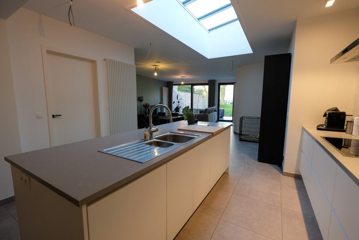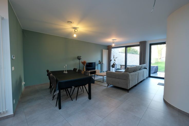 • Gelijkvloers: Ruime inkomhal met een bureauruimte en een apart toilet. De volledig geïnstalleerde keuken sluit aan op de eetplaats en woonkamer met zithoek, die geniet van veel natuurlijke lichtinval.