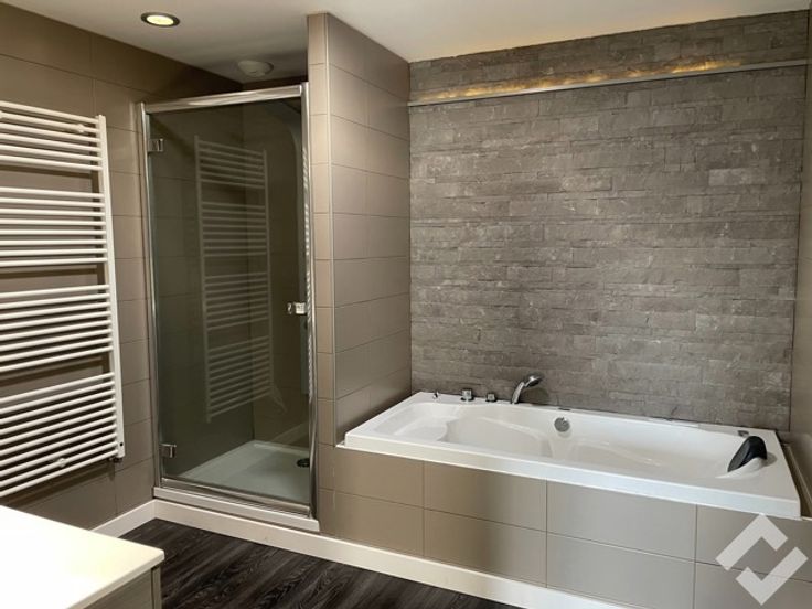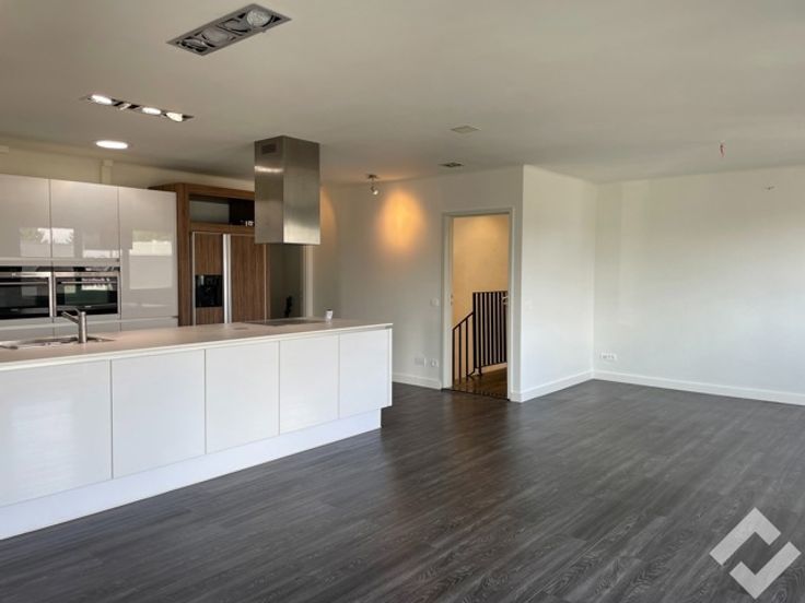 Langs een aparte ingang komen we in het appartement (127m2) terecht. Deze heeft een open en geïnstalleerde keuken die uitgeeft in de leefkamer, 2 slaapkamers, badkamer en berging/wasruimte. Verder beschikt het appartement over een privatieve parkeerplaats voor de deur, een leuk terras en afg