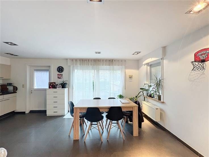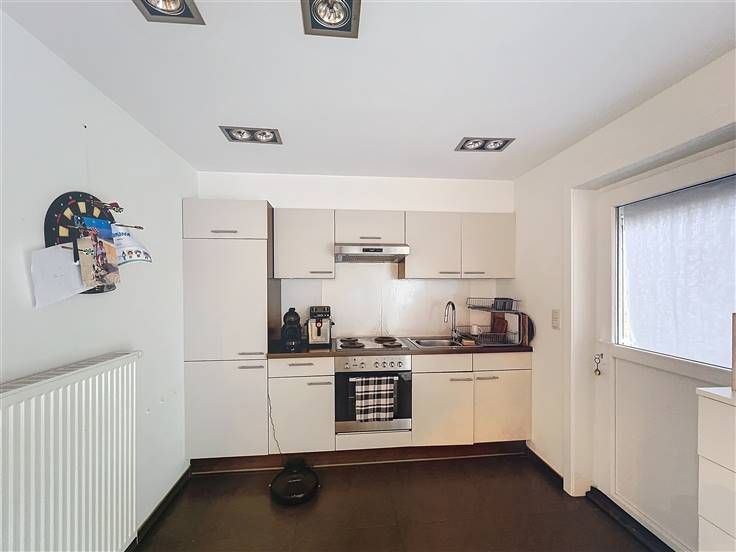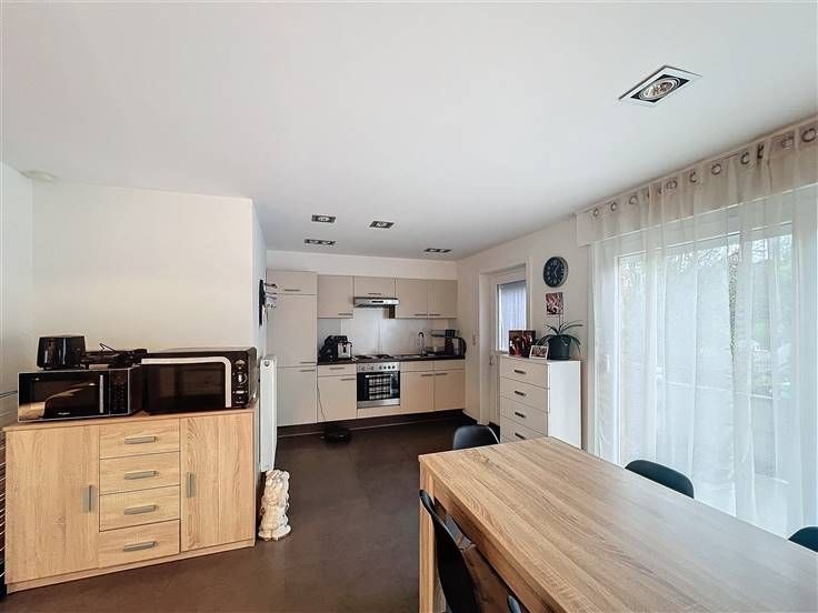 -Inkomhal met apart toilet, leefruimte met open keuken & aansluitend met een terras.