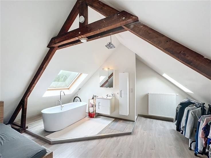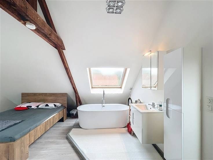 -2de verdiep: ruime master bedroom met 2de badkamer bestaande uit vrijstaand bad & lavabomeubel.
