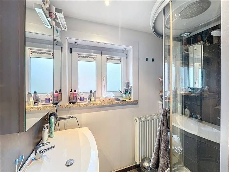 - 1ste verdiep: 3 slaapkamers & badkamer bestaande uit lavabomeubel en douche.