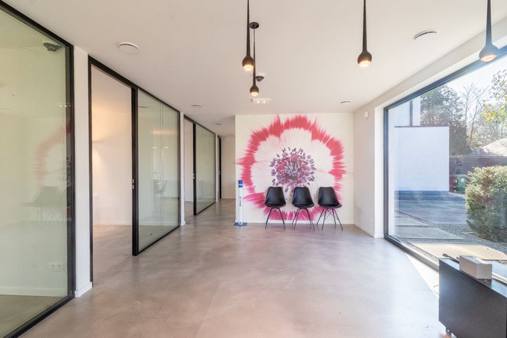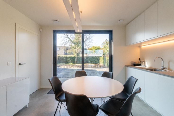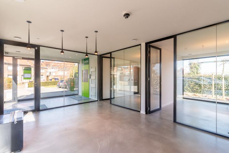 Lichtrijke Werkomgeving: De ruimte is voorzien van grote ramen die natuurlijk licht binnenlaten, wat zorgt voor een aangename werksfeer. - Moderne Keuken: Een keuken met veel kastruimte & ingebouwde koelkast, ideaal voor het houden van lunch & koffiepauzes. - 4 afgesloten ruimtes: 4 afgesloten ruimtes bieden privacy en rust voor geconcentreerd werken. - Toiletten: Een moderne hal voorzien van 2 aparte toiletten.