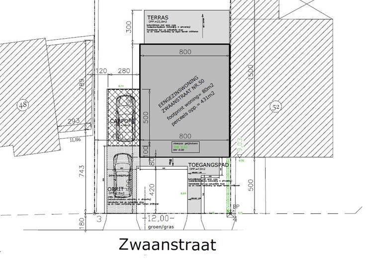 - Inkomhal- Gastentoilet- Leefruimte met open keuken- Trap naar boven- Berging/wasplaats- Opbergplaats voor fietsen- Carport