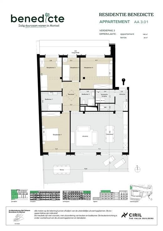 Deze penthouse is gelegen aan de Sint-Benedictusstraat in Mortsel binnen het energiezuinige nieuwbouwproject Benedicte: een groene thuis voor iedereen die waarde hecht aan duurzaamheid, een natuurlijke omgeving en zalig wooncomfort. Benedicte is een toekomstgericht en duurzaam BEN-woonproject rondom een nieuw groen en autoluwe park in Mortsel. Alle woningen en appartementen halen minstens EPC label A. Bovendien zijn de gebouwen energiepositief: ze verbruiken dus minder energie dan ze produceren. Deze penthouse heeft een oppervlakte van 140m², heeft een terras van 36m² met zuid oriëntatie, en vier slaapkamers. Bijzonderheden - koolstofneutrale massieve houtbouw (CLT) - energiezuinige BEN-woningen - maximaal behoud van het bestaande groen - gelegen in een autoluw park - 100% hernieuwbare energie - ondergrondse autostaanplaats en kelder bij aan te kopen Ben jij geïnteresseerd in dit nieuwbouw appartement te koop in hartje Mortsel, ben je op zoek naar ander vastgoed of wens je de waarde van jouw eigendom te kennen? Dan ben je bij BOLT immo aan het juiste adres! Wij helpen jou graag verder. Weet dat wij u met plezier helpen voor een vrijblijvende (EN GRATIS!) SCHATTING, mét tips en advies. U kan ons contacteren op het nummer 03 568 68 06 of langskomen in onze kantoren te Wilrijk of Antwerpen.