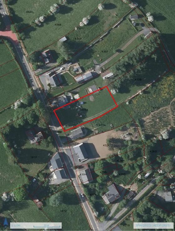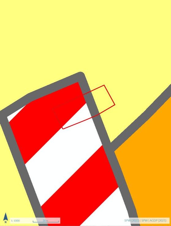 Terrain de 2017 m² en zone d'habitat à caractère rural sur une profondeur de 50 mètre et le surplus en zone agricole. Terrain d'environ 25m de façade.