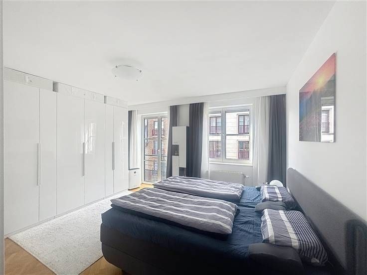 WOLUWE-SAINT-PIERRE: Dicht bij Montgomery en al zijn voorzieningen, prachtig appartement van ongeveer 150m². Het is als volgt samengesteld: een inkomhal met kasten die leidt naar een ruime woon/eetkamer van ± 45m² met toegang tot een terras op het OOSTEN, een volledig ingerichte keuken met ruimte voor een ontbijthoek en een bijkeuken met wasmachine en droogkast, een apart toilet. Een nachthal met kast die leidt naar twee slaapkamers (23m² en 19m²), waarvan één met aangrenzende badkamer, een douchekamer en een apart toilet. Een kelder maakt het appartement compleet. Een afgesloten garage met ruimte voor fietsen is verplicht voor €100/maand. Beschikbaar op 1 mei. Nu bekijken! .