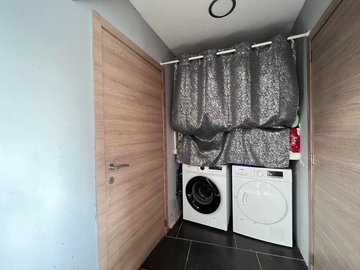 La maison numéro 2 est composée d'un salon, d'une cuisine, d'une salle de douche et d'une chambre à l'étage.