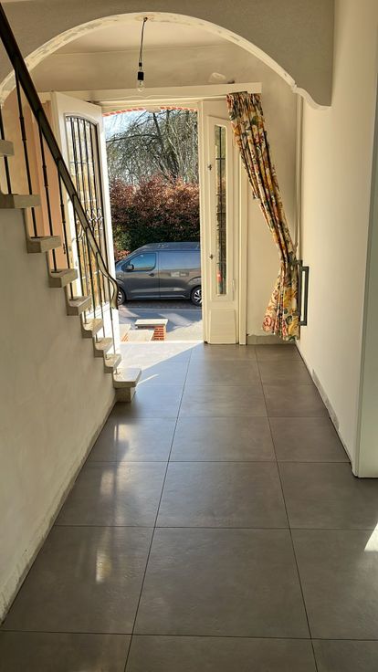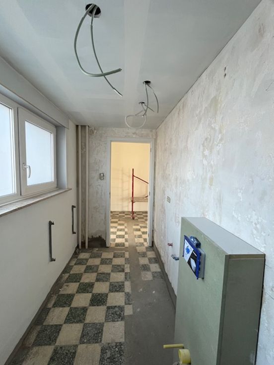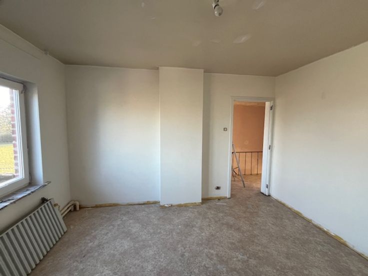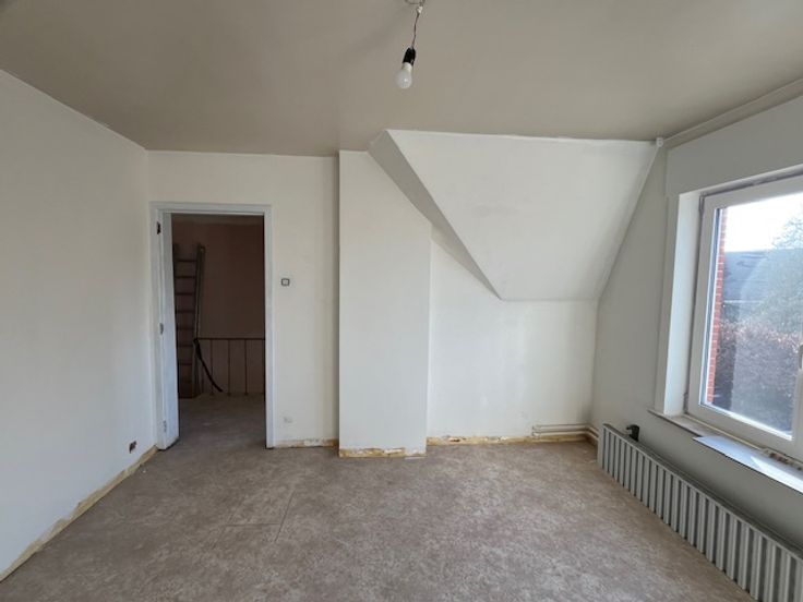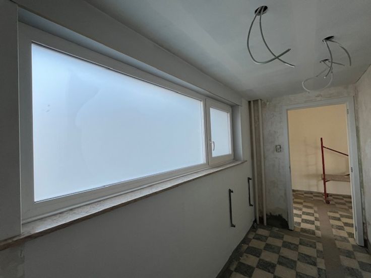Totaal gerenoveerde en rustig gelegen woning ingericht met op het gelijkvloers een inkomhal, ruime leefruimte, volledig nieuwe ingerichte keuken met frigo, oven, dampkap, inductiekookplaat, vaatwas, spoelbak, nieuwe badkamer met douche, toilet en lavabomeubel, achtergelegen wasplaats/berging met tweede toilet. Op de verdieping zijn er 3 slaapkamers en een bureauruimte. Kelder met garage voor 1 wagen, zolder. Achtergelegen tuin. De woning wordt momenteel volop gerenoveerd : nieuwe PVC ramen, geïsoleerde zolder, nieuwe ceramische vloeren op het gelijkvloers, laminaat op de verdieping, alles wordt instap klaar geschilderd, eerste ingebruikname. Vrij vanaf 01/05/2025. Een bezoek meer dan de moeite waard !