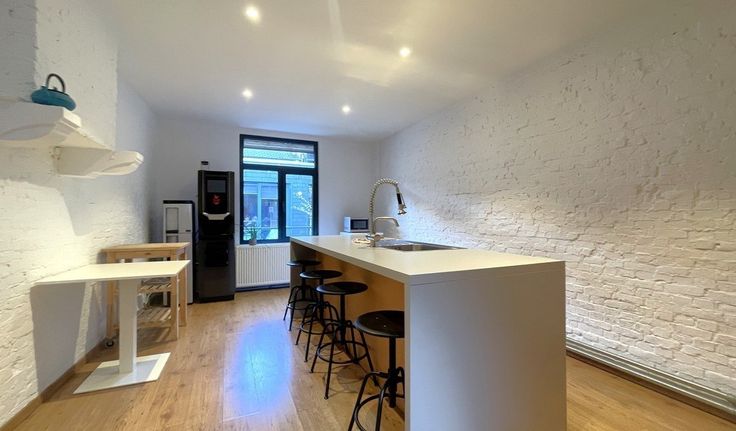 Specificaties: gevel in traditioneel metselwerk, pvc schrijnwerk met opengaande ramen, deels ingedeelde kantoren met kitchenette met toestellen (glv), keukeneiland (v1) en privatief sanitair H/D, open zoldering, pendelarmaturen en opbouw spots, keramische tegelvloer, laminaatparket, databekabeling, cv op gas en airco, glasvezel internet en bijhorende routers, inbraakalarm, parlofoon en videofoon, gemeenschappelijke patio, camerasysteem, Sonos geluidssysteem, mogelijkheid tot overname van het leasingcontract van het koffieapparaat en de watertoren van de vorige huurder en mogelijkheid tot huren ondergrondse parking en parking in Balansstraat