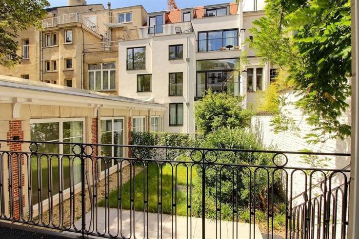 CONGRES - Bathim&CO presents a superb refurbished back house located on the first floor of a superb Hôtel particulier in the center of Brussels, close to shops, restaurants and public transport. The house comprises an entrance hall with checkroom and separate toilet, the 2 bedrooms with en-suite bathrooms are on the first floor overlooking the 29m2 garden, laundry room, upstairs a large dining room and living room with fully-equipped open-plan kitchen, separate toilet. Indoor bicycle parking.  Communal charges of €50/month (maintenance of communal areas, garbage cans, water softener, insurance).  Visit with Sascha from Bathim&CO.