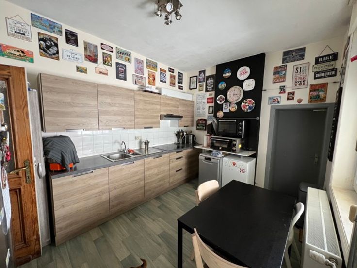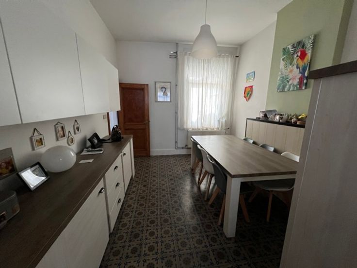 LOYER: 850 euros HYON : Bonne maison dans une rue tranquille et à 5 min du centre de Mons comprenant : hall, salon, salle à manger, cuisine semi-équipée 2 chambres et salle de bains à l'étage, grand grenier, buanderie, 2 wc, 1 pergola, 1 jardin clôturé, cave, emplacement voiture à l'extérieur, nouveau chauffage central au gaz, double vitrage..Visites et infos : 0497/720.702. Libre le 1er juin 2025.