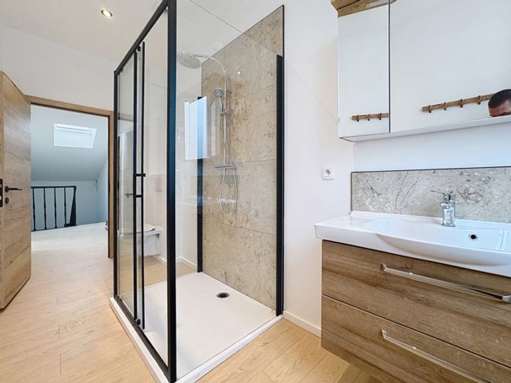 BHS Immo vous propose à la location ce magnifique duplex entièrement rénové situé au deuxième et troisième étage d’une petite résidence de quatre unités. Localisé au quartier des Vennes, à proximité des commodités, il se compose comme suit : un hall d’entrée, un séjour lumineux ouvert sur une cuisine hyper-équipée, trois chambres et une salle de bain (douche – WC).