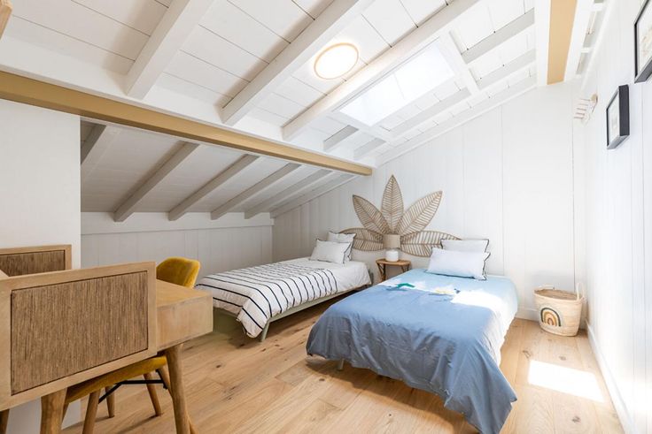 L'étage mansardé comporte 2 chambres supplémentaires avec salle de bain.