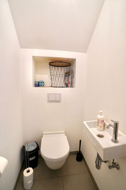 Indeling: inkomhal met apart toilet, leefruimte met eet- en zithoek, open geïnstalleerde keuken en de tuin met zonneterras & tuinberging.