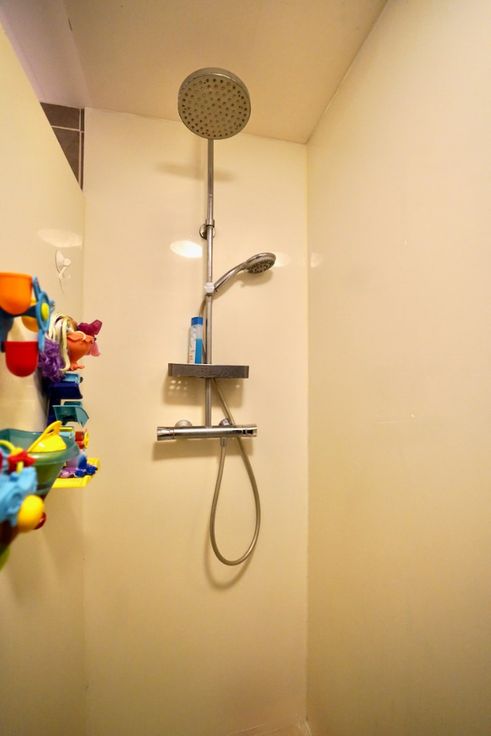 1ste verdieping: nachthal, 2 slaapkamers, badkamer met douche & toilet en de opbergzolder.