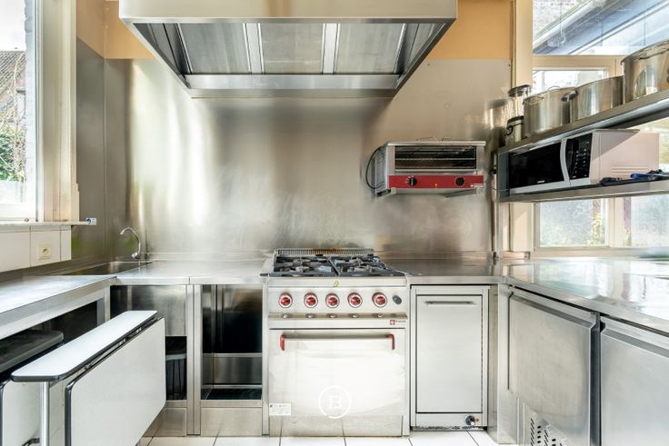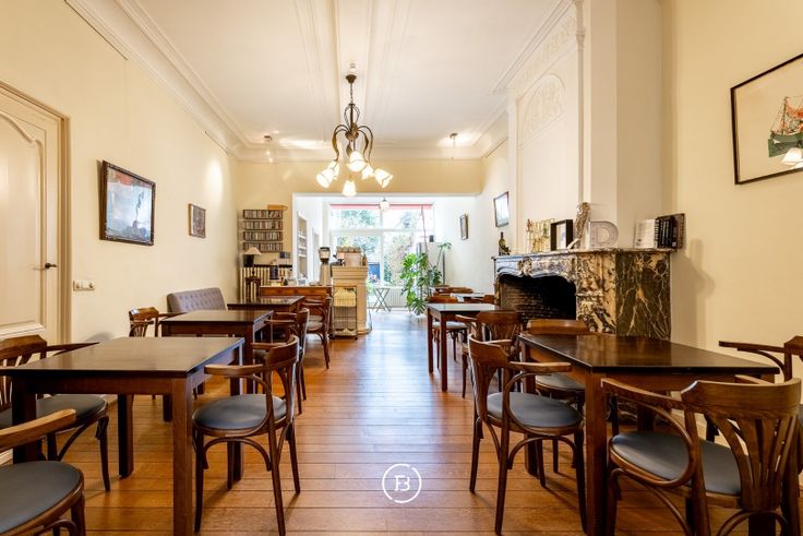 Een industriële keuken, ruime kelder, bar, gelagzaal (29 couverts), ruim terras (22 couverts) met tuin achteraan en sanitaire voorzieningen (man/vrouw) in de hal. Het pand is vrij van brouwer maar is op heden wel verhuurd (zie handelshuurcontract – op te vragen bij de makelaar).