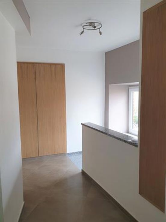 Duplex entièrement rénové à proximité de toutes commodités Entrée individuelle donnant accès au hall d'entrée avec placards encastrés et pièce buanderie, spacieux séjour (49m²) avec coin cuisine entièrement équipée (taque, hotte, four, frigo, lave-vaisselle), salle de douches. A l'étage, hall de nuit donnant accès aux 2 chambres (19 et 18,20m²). Charges : compteurs eau, gaz, électricité individuels, pas de charges communes. Chauffage central gaz chaudière Budérus, châssis PVC DV. Bail d'un an renouvelable, deux mois de garantie locative. Superficie habitable approximative : 105m² Disponible à partir du 1er mai 2025. Infos & visites sur RDV au 071.32.10.37