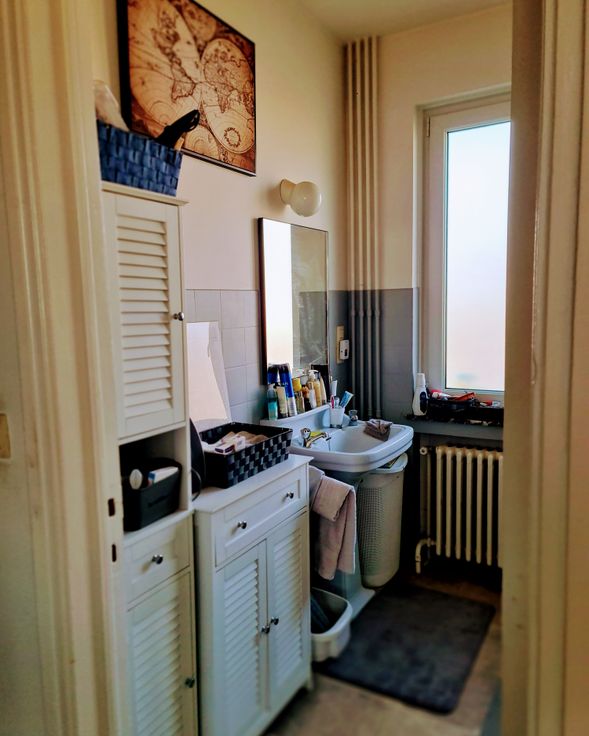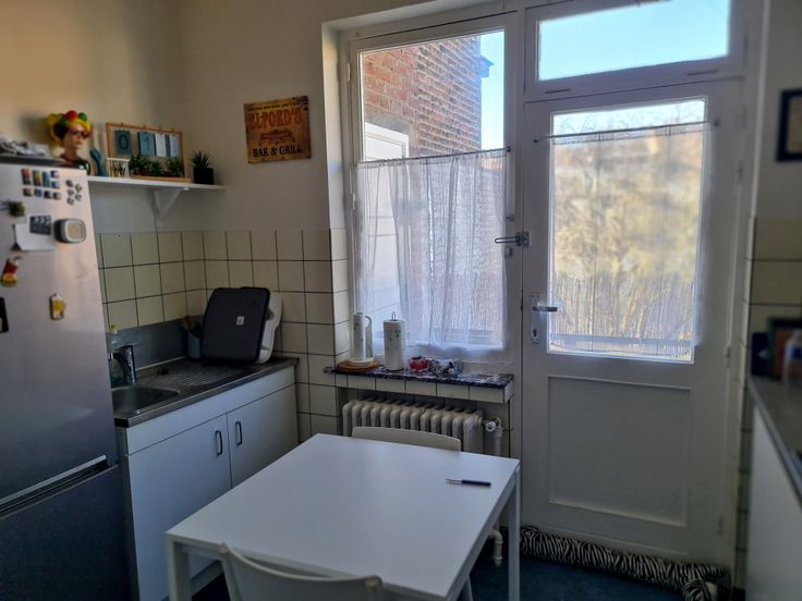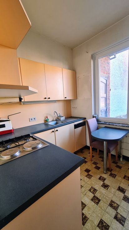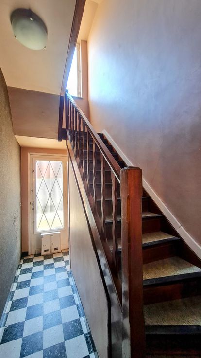 Opbrengsteigendom uit 1958, betonstructuur, bestaande uit twee appartementen met twee slaapkamers volgens de bouwplannen (momenteel omgebouwd tot één slaapkamer) die op de 1e en 2e verdiepingen als volgt zijn ingedeeld: een inkomhal, een ingerichte keuken met een zeer groot goed georiënteerd terras op de 1e verdieping en een balkonterras op de 2e verdieping, een woon-/eetkamer, een slaapkamer en een badkamer met toilet. Grote zolder die over de gehele oppervlakte verbouwd kan worden. (grote duplex mogelijk mits bouwvergunning) Op het gelijkvloers : een zeer grote garage met op afstand bedienbare deur, een stookruimte (2 condensatieketels), een berging die gebruikt kan worden als wasruimte en een betonnen trap die toegang geeft tot de kelders (meerdere individuele kelders). Dubbele beglazing, 2 gasmeters, 2 elektriciteitsmeters en 2 watermeters. PEB F/1e verdieping en G/2e verdieping. BEZOEKEN EN INFORMATIE: 0475.58.93.05