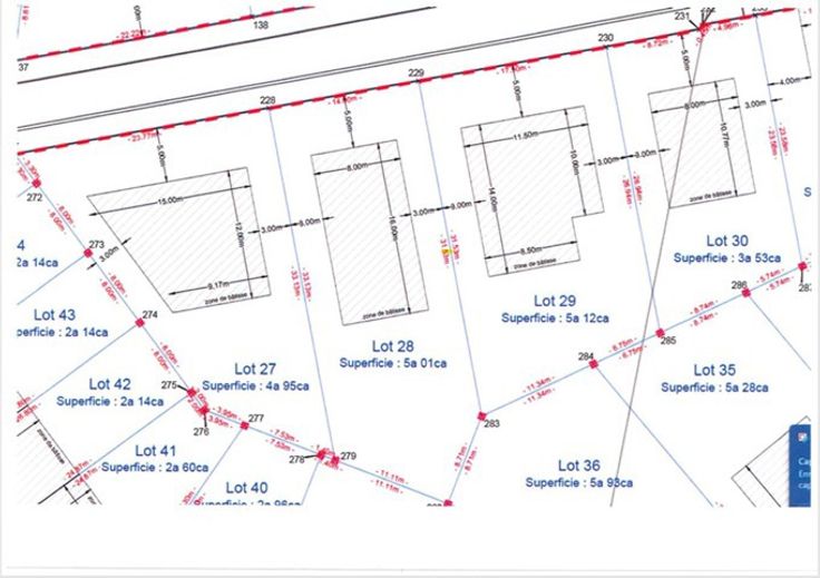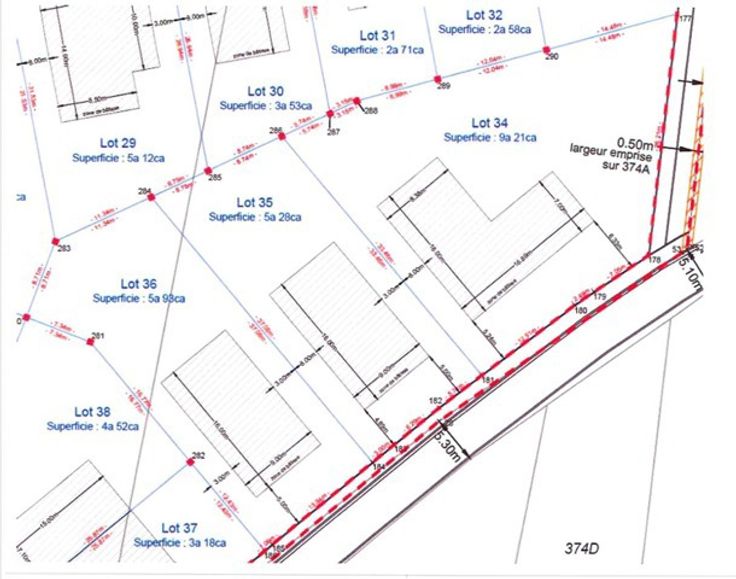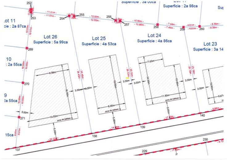 Lot 24 : 4a 86ca - Lot 25 : 4a 53ca - Lot 26 : 5a 99ca - Lot 27 : 4a 95ca - Lot 28 : 5a 01ca - Lot 29 : 5a 12ca - Lot 30 : 3a 53ca - Lot 34 : 9a 21ca - Lot 35 : 5a 28ca - Lot 36 : 5a 98ca