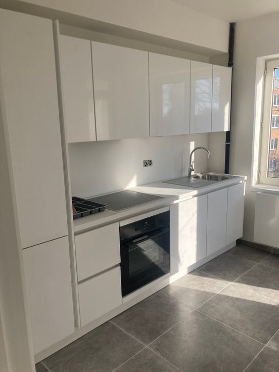 prox métro Tomberg appartement totalement rénové 1ere occupation après rénovation 2 chambres salon sàmanger hall buanderie wc salle de douche cuis équipée terrasse arrière poss parking
