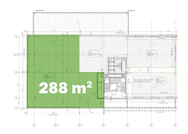 Flexibele indeling van de unit volgens specifieke behoeften (kantoren gecombineerd met een (licht) magazijn, showroom, kitchenette). Gemeenschappelijke sanitaire voorzieningen op niveau 1.