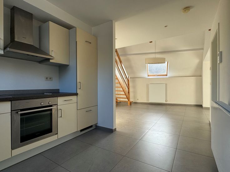 Spacieux duplex récent de 105m² habitables avec deux chambres. Cet appartement est situé au 2ème étage de l’immeuble et à proximité des Lacs de l’Eau d’Heure. PAS D’ASCENSEUR !