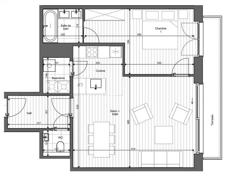 1ère occupation !!! UCCLE (Fort Jaco), dans une nouvelle construction, à proximité immédiate des commerces, des restaurants, du David Lloyd et de la forêt de Soignes, sublime appartement de 73m² + terrasse de 7,5m², comprenant: hall d'entrée, wc séparé, living, cuisine full équipée, 1 chambre, salle de bain, espace buanderie, porte blindée, cave privative. Parking auto en option (130€/mois), parking moto en option (65€/mois) et local vélos. L'appartement est équipé de rails, luminaires dans certaines pièces. Libre directement. BAIL SOCIETE OK! Pour conditions et visites: 02 344 88 84 / rent@tribel-immo.be / www.tribel-immo.be (PEB: B)