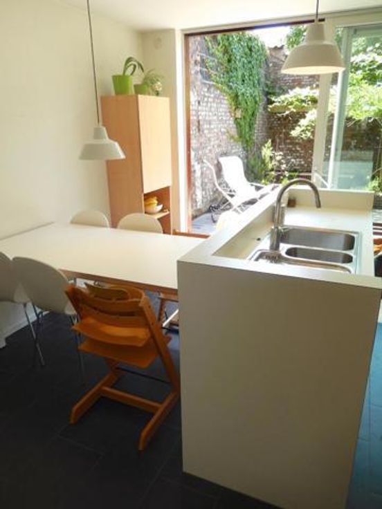 compromis in opmaak. Herenwoning met hal, toilet, kelder, driedelige leefruimte (keuken, eetplaats en TV kamer), stadstuin met lager gelegen zithoek, 2 badkamers (telkens met douche), 4 slaapkamers en dakterras. Gelegen tussen wijk Forelstraat en Rozebroeken. Recent gerenoveerd met leuke unieke elementen door de architect die het momenteel zelf bewoont. Zeer energiezuinig met een EPC van 160! Zonnepanelen op het dak (overname te bespreken). Garage kan bijgehuurd worden.