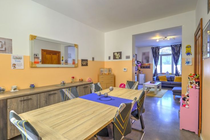 SPACIEUSE MAISON QUATRE CHAMBRES EN BON ETAT AVEC TERRASSE ET COUR - COMPOSITION / -Sous-sol : quatre caves 14m² - 12.5m² - 10m² - 8m² - Rez-de-chaussée: un hall d'entrée de 11m², une cuisine équipée de 14m² (évier, lave-vaisselle, frigo, congélateur, four, taques à induction, hotte), une salle à manger de 14m², un séjour de 18m², une toilette indépendante, une terrasse couverte de 8m², une terrasse de 20m², une cour de 35m² - Entresol : une salle de bain de 9m² (double évier, toilette, douche) - 1er étage : un palier de 3m², deux chambres de 19m² - 14.5m², un bureau/dressing de 7m² - 2ème étage : un palier de 3m², deux chambres de 20m² - 10 m², un bureau/dressing de 7m² - DIVERS: compteur intelligent, chauffage central au gaz (chaudière à condensation), châssis PVC double vitrage, cuisine équipée récente, proximité immédiate des commodités, description non contractuelle communiquée à titre informatif.