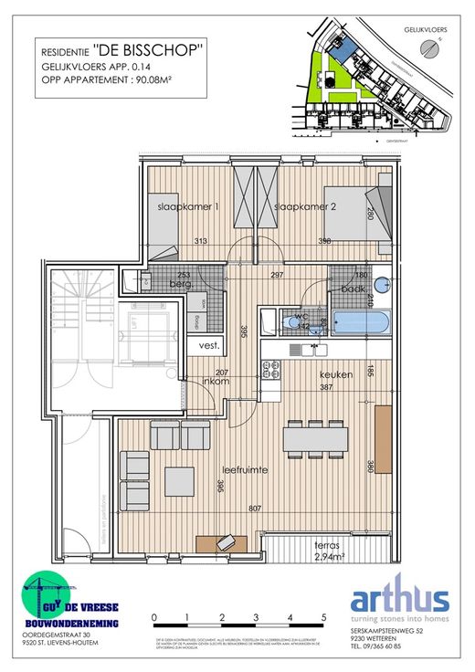 Dit mooi appartement is gelegen op de gelijkvloerse verdieping van een recent gebouw (2010). Het beschikt over een lichtrijke woonkamer met eetplaats en ingerichte open keuken (incl. vaatwas, koelkast, ...), 2 ruime slaapkamers, ingerichte badkamer (douche-in-bad, dubbele lavabo), een apart toilet en een berging/wasplaats. De living / keuken geeft uit op een mooi, ruim en zuid georiënteerd terras waar men een leuk uitzicht heeft op de volledig aangelegde, gemeenschappelijke binnentuin! Het appartement is voorzien van alle hedendaags comfort; dubbele beglazing, CV op aardgas, videofonie, elektriciteit conform AREI, gunstig EPC, ... Bij dit appartement kan er een optioneel een autostaanplaats in de ondergrondse parking aangekocht worden. Verder is er ook een gemeenschappelijke fietsenstalling aanwezig. Ideaal gelegen in hartje Aalst, vlakbij Vredeplein, Grote Markt en winkelstraten. Tevens op wandelafstand van verschillende scholen en station! Meer foto's binnenkort beschikbaar. Bel vandaag voor een bezoek op afspraak. Renovatieplicht: nee