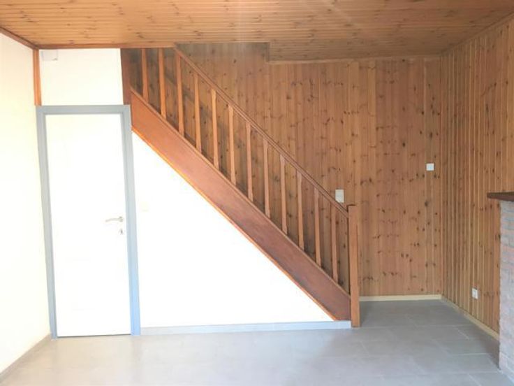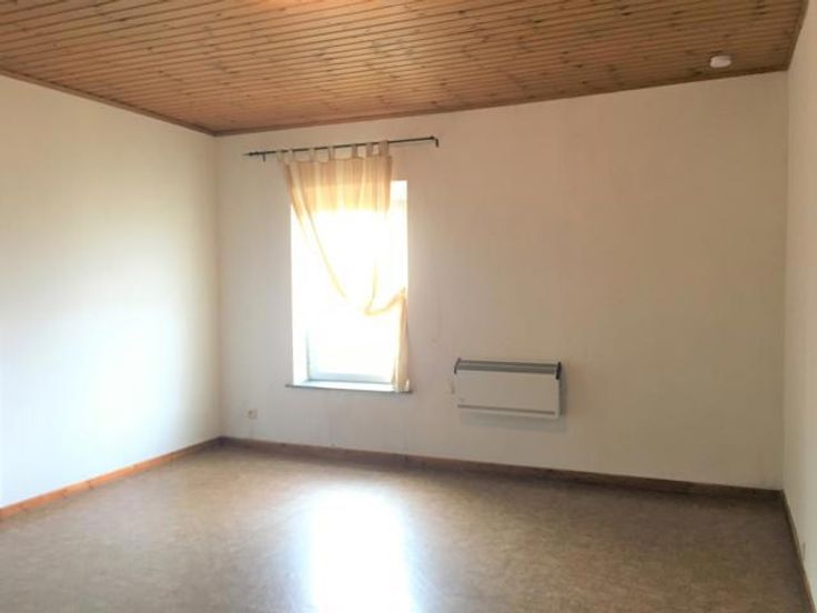 Séjour, cuisine équipée, salle de douches, 1 chambre, cave, terrasse et jardin attenant. Bail d'un an renouvelable, 2 mois de garantie. Compteurs individuels. Volets au rez. Chauffage par convecteur électrique.