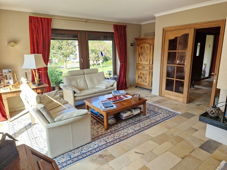 Cette propriété, accessible par une allée privative, se complète d’un garage équipé d’une porte sectionnelle électrique et de caves sous toute la superficie avec espace chaufferie/buanderie.