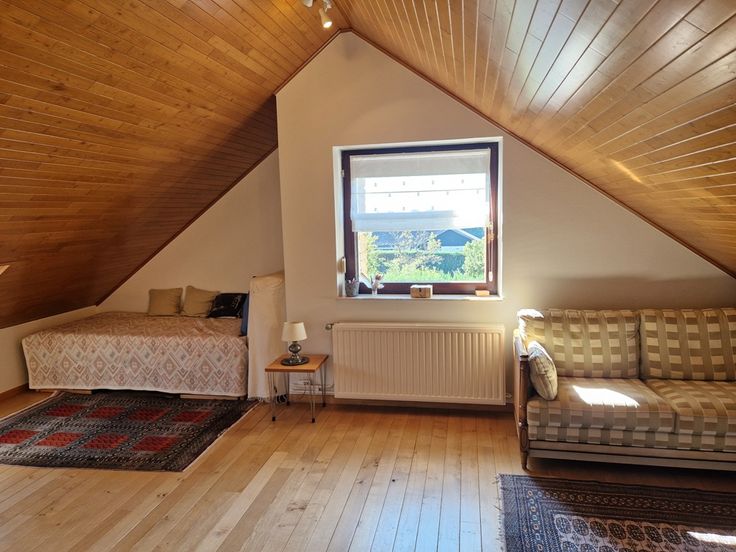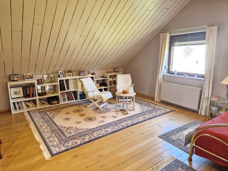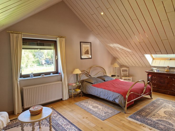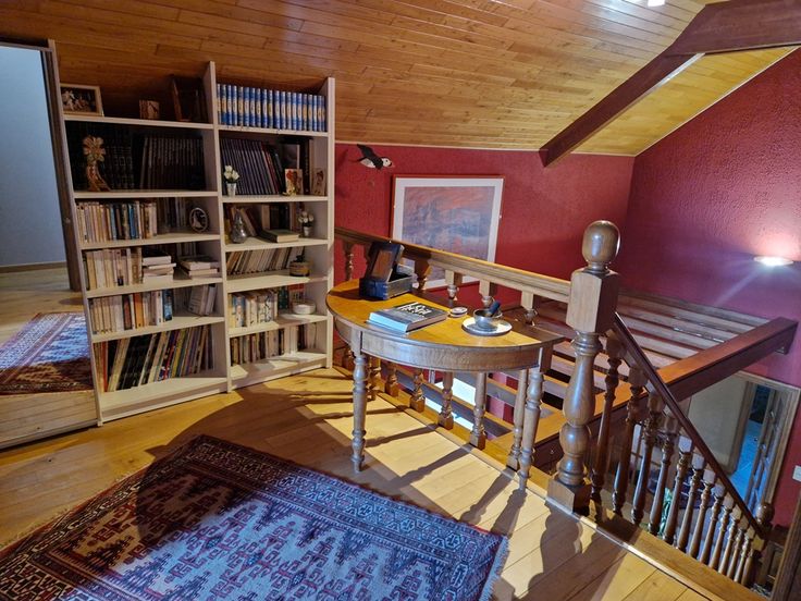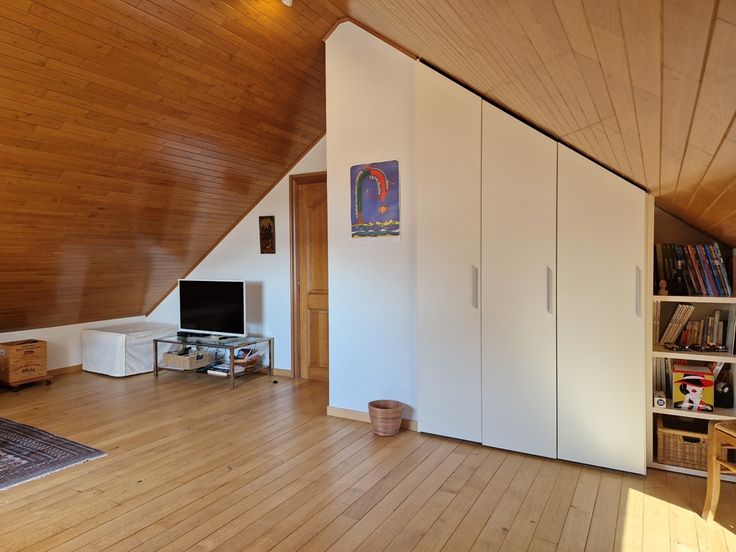 L’étage compte un pallier avec coin bibliothèque, 3 chambres dont une avec placards intégrés et une salle d’eau.