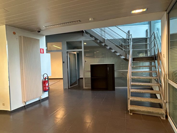 Het kantoor zelf heeft op het gelijkvloers een aparte inkom met sanitaire voorzieningen, kitchenette. Gebouw bestaat uit een tiental verschillende kantoorruimtes met lamellenplafonds, keramische tegels, Tl verlichting en spots, cv op gas, airco in bepaalde burelen, ventilatie. Tevens is er parlofonie, ingebouwde kasten, voldoende raampartijen (dubbel glas). Kantoren liggen op gelijkvloers, eerste en tweede verdieping.