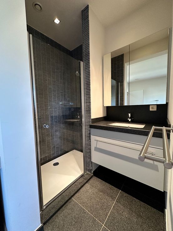 Dit prachtige, luxueuze appartement op de eerste verdieping bevindt zich op een ideale locatie, vlakbij het stadscentrum van Hasselt. Met winkels en andere faciliteiten op wandelafstand, en een uitstekende bereikbaarheid naar alle uitvalswegen, biedt dit appartement het perfecte evenwicht tussen comfort en toegankelijkheid. Het appartement beschikt over een ruime, volledig uitgeruste open keuken met een praktische berging. De grote open livingruimte is voorzien van een gezellige gashaard en biedt directe toegang tot het zonovergoten terras, ideaal voor het genieten van de buitenlucht. De hal is voorzien van praktische inbouwkasten en een extra bergruimte, wat bijdraagt aan het ruime gevoel. Er zijn twee ruime slaapkamers in het appartement. De eerste slaapkamer beschikt over een ensuite badkamer, uitgerust met een wastafel en douche. De tweede slaapkamer is voorzien van een ruime ensuite badkamer met dubbele wastafel, douche, ligbad en toilet. Ondergronds bevindt zich een ruime en afgesloten garage, geschikt voor twee wagens. Dit appartement is de ideale keuze voor wie op zoek is naar luxe, comfort en een uitstekende locatie in Hasselt. Gebouw met lift Onmiddellijk beschikbaar Gemeenschappelijke lasten € 80,00 Onderhoud centrale verwarming € 8,00