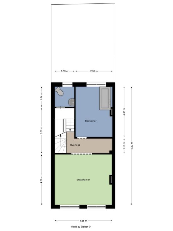 1ste verdieping: Slaapkamer, Badkamer, berging, toilet2e verdieping: Woonkamer, volledig ingerichte keuken, slaapmezzanine, technische ruimte.