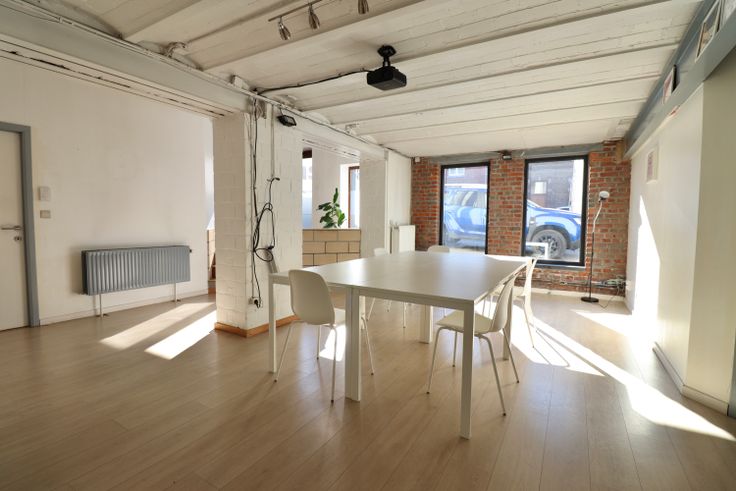 Composition: espace central (+-35m2) - Bureau 1 (+-19m2) - Bureau 2 (+-20m2) - Bureau 3 (+-15m2) - Kitchinette - WC - Réserve