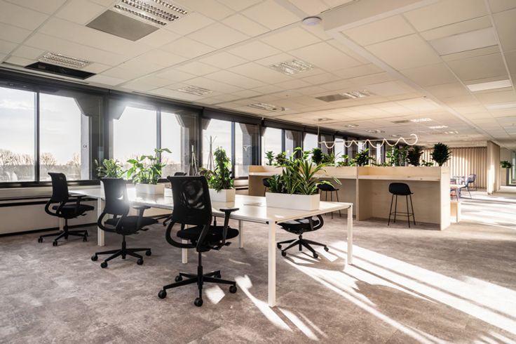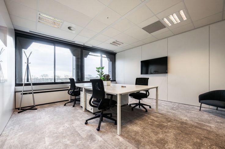 De ruimte is volledig ingericht met een ruime bureau, ergonomische bureaustoel, presentatiescherm en snelle wifi. Als huurder krijg je toegang tot alle gedeelde faciliteiten in het businesscentrum: een volledig ingerichte keuken, sanitair, airco, ventilatie, verwarming, zonnewering, telefoonhokjes en vergaderruimtes.