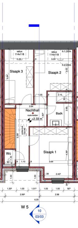 * 1ste verdiep: nachthall met toilet, 3 slaapkamers, badkamer.