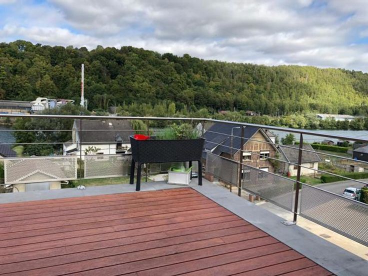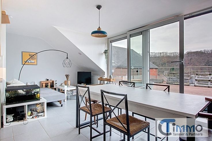 Appartement atypique avec terrasse et vue sur la Meuse Situé au 3e et dernier étage d’un immeuble récent, cet appartement de 102m² lumineux offre un cadre de vie moderne et confortable. Son vaste séjour, agrémenté d’une grande baie vitrée, s’ouvre sur une superbe terrasse de 45m² avec une vue dégagée sur la Meuse. L’appartement se compose d’un spacieux hall d’entrée avec coin bureau, d’un séjour lumineux avec cuisine équipée, de deux grandes chambres et d’une salle de bain moderne garantissant un confort optimal. Son agencement contemporain et son espace cocooning créent une atmosphère chaleureuse et apaisante. Atouts supplémentaires : ascenseur et cave. Un bien rare à ne pas manquer ! Provision charges communes : 100 euros ( communs) compteurs : eau, électricité et gaz individuels Appartement en attique avec terrasse et vue imprenable sur la Meuse Situé au 3e et dernier étage d’un immeuble récent, cet appartement lumineux offre un cadre de vie moderne et confortable. Son vaste séjour, agrémenté d’une grande baie vitrée, s’ouvre sur une superbe terrasse avec une vue dégagée sur la Meuse. L’appartement se compose d’un spacieux hall d’entrée avec coin bureau, d’un séjour lumineux avec cuisine équipée, de deux grandes chambres et d’une salle de bain moderne garantissant un confort optimal. Son agencement contemporain et son espace cocooning créent une atmosphère chaleureuse et apaisante. Atouts supplémentaires : ascenseur et cave. Un bien rare à ne pas manquer ! Provision charg