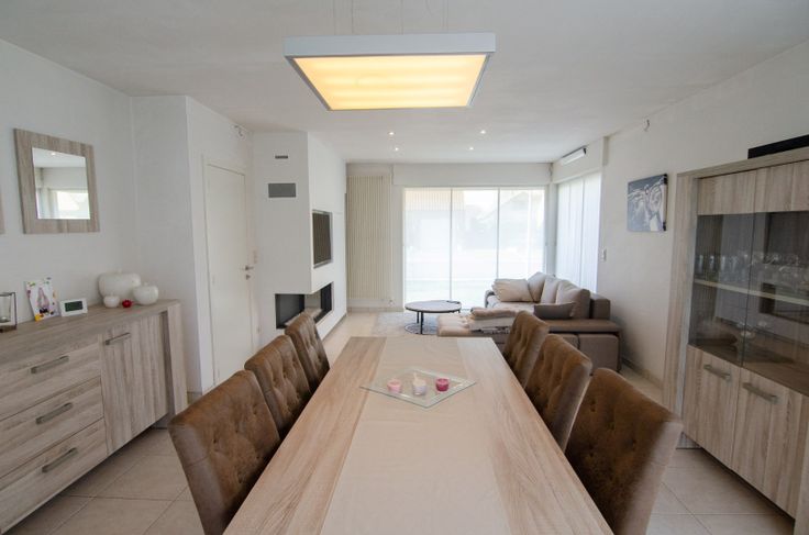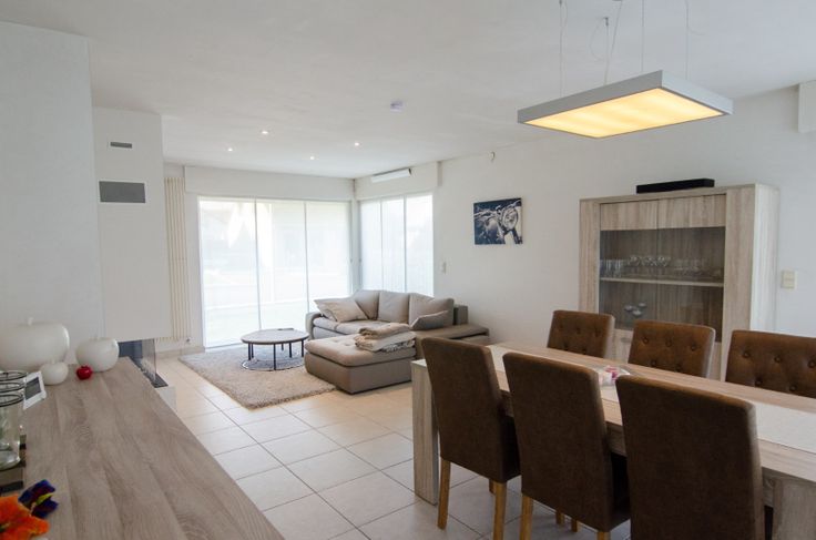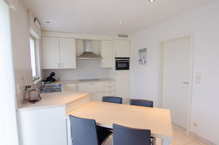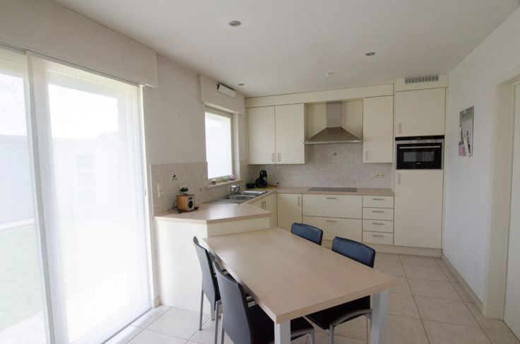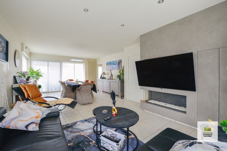 Indeling: een inkom met een gastentoilet en trap naar boven. Vervolgens komen we terecht in een grote, lichtrijke leefruimte met ingebouwde kasten en ingebouwde gashaard. Aansluitend vinden we de volledig uitgeruste keuken (combi-oven, vaatwas, frigo, kookplaat...). Zowel via de leefruimte als via de keuken hebben we toegang tot het terras. Vanuit de keuken kunnen we ook naar de garage met ingebouwde kasten, aparte berging, lavabo en aparte douchekabine. In de garage is ook aansluiting voor een wasplaats. Ideaal voor wanneer u zich heeft laten gaan in de tuin! De garage is bovendien voorzien van een vernieuwde automatische sectionale poort.