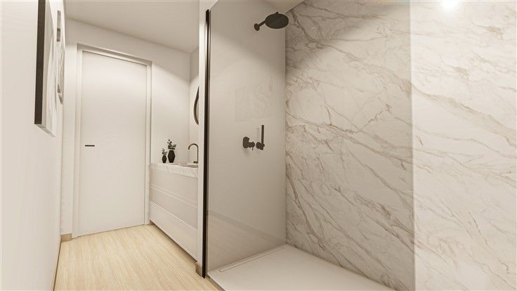 Prachtig nieuwbouwappartement gelegen in Residentie Durmedijk in hartje Hamme! Dit appartement op verdieping maakt deel uit van een kleinschalig complex (6 appartementen) en heeft een praktische inkomhal, apart toilet, eet- en zithoek, keuken met kasten (toestellen nog vrij te kiezen twv € 10 000), berging en 2 ruime slaapkamers. Daarnaast heeft u een terras van 6 m² waar u kan genieten van de rust en het zonnetje. Inclusief ondergrondse garage én extra kelderberging! Bijkomende troeven: ·energiezuinig: E-peil van