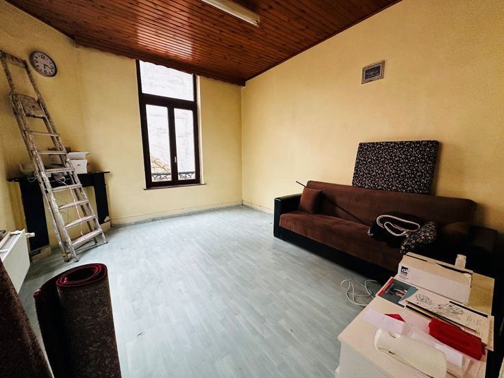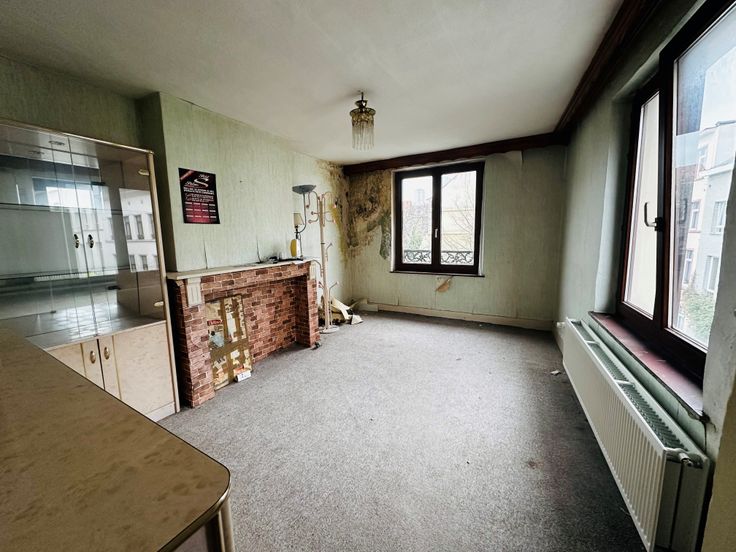 SINT-JOOST-TEN-NOODE, aan de grens met Schaerbeek, vlakbij de Kruidtuin, Square Armand Steurs, winkels en openbaar vervoer. Huis van ongeveer 162 m² (volgens EPC-waarden) te renoveren. Stedenbouwkundig erkend als bifamiliale woning. De indeling van de woning is als volgt: